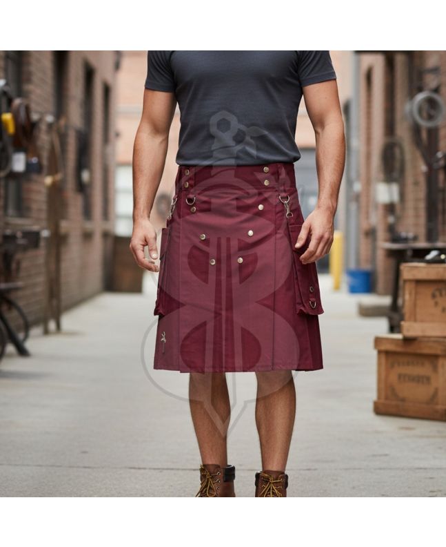 Men's Burgundy Utility Kilt