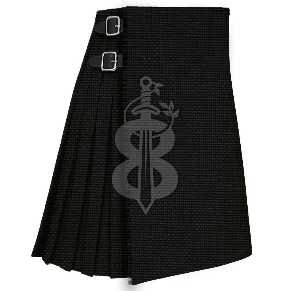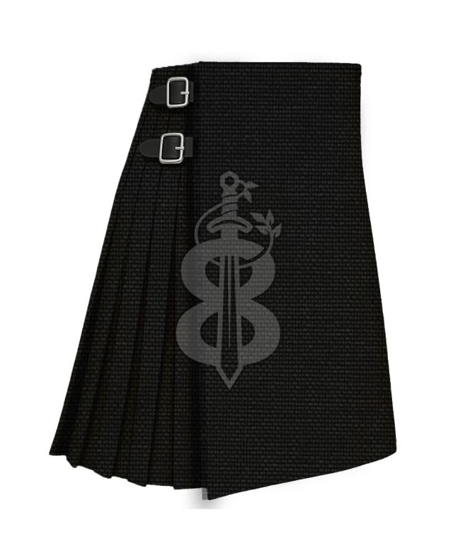 • Solid Black Modern Tartan Traditional 8 Yard Kilt
